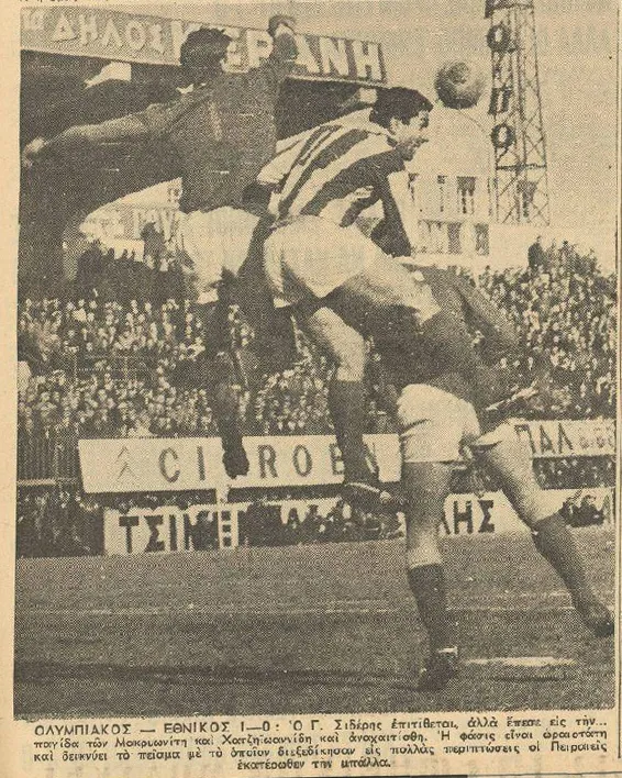 Τερματοφύλακας ομως….ΙΣΤΟΡΙΚΗ στιγμή, μετα αποκλεισμό δυο ετων από επίσημα ματς (υπέγραψε παράνομα δελτίο σε δυο ομάδες…η άλλη ήταν ο …Παναθηναϊκός!) ο Σάββας Θεοδωρίδης κάνει το ντεμπούτο του στο πρωτάθλημα (ήδη από το 1954 είχε παίξει Κύπελλο και Πειραϊκό)