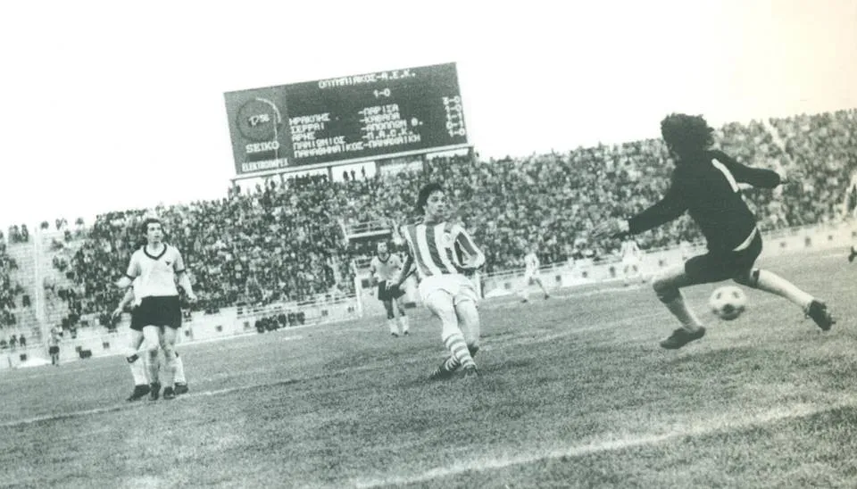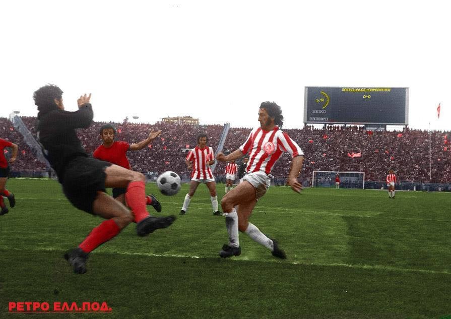Ο Θρύλος είχε σκαρώσει απίστευτα χουνέρια στους αντιπάλους του φιλοδωρώντας τους με 6 και 5 γκολ το Αιγάλεω, 6 τον Πανσερραϊκό, 3 τον Ηρακλή, 2 τεσσάρες τον Άρη, οχτώ και 4 τον Απόλλωνα, 11 τον Φωστήρα, 3 τον ΠΑΟΚ κ.λ.π. Από τον κυκεώνα το γκολ γλίτωσε στον πρώτο γύρο η ΑΕΚ που απέσπασε 0-0 στη Νέα Φιλαδέλφεια. Στο ματς του 2ου γύρου πού έγινε σαν σήμερα το 1974 ο Ολυμπιακός πήρε το αίμα του πίσω συντρίβοντας την ένωση με 4-0.