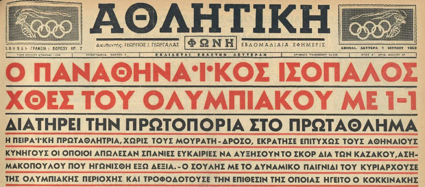 | ΟΛΥΜΠΙΑΚΟΣ – ΠΑΝΑΘΗΝΑΪΚΟΣ 1-1 |