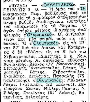 | ΒΥΖΑΝΤΑΣ ΜΕΓΑΡΩΝ – ΟΛΥΜΠΙΑΚΟΣ 0-0 |