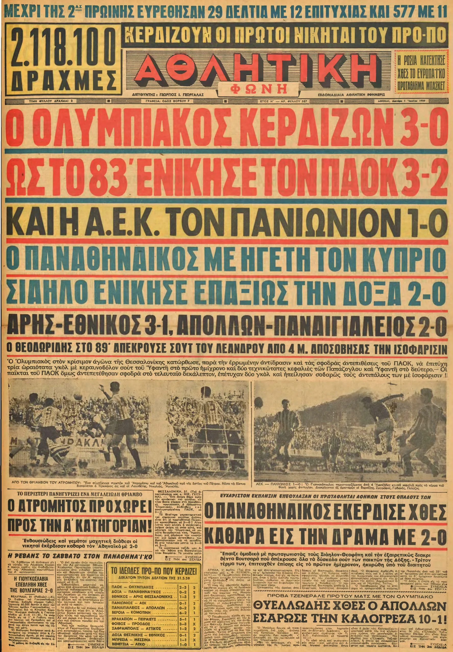 ΑΕΚ-ΑΠΟΛΛΩΝ ΑΘ.=2-0 ΠΑΟ-ΠΑΟΚ=5-1 ΠΑΝΑΧΑ’Ι’ΚΗ-ΗΡΑΚΛΗΣ=4-2 ΟΦΗ-ΛΑΡΙΣΑ=5-1 ΠΑΝΙΩΝΙΟΣ-ΠΙΕΡΙΚΟΣ=4-2 ΔΟΞΑ-ΑΘΗΝΑ’Ι’ΚΟΣ=0-0 ΕΘΝΙΚΟΣ-ΞΑΝΘΗ=3-2 ΑΡΗΣ-ΠΑΝΣΕΡΡΑ’Ι’ΚΟΣ=0-2.