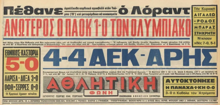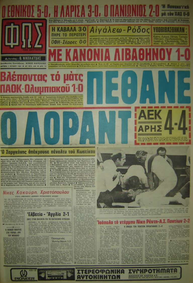 ΣΗΜ 2 ΣΤΟ 16’ ΑΦΗΣΕ ΤΗΝ ΤΕΛΕΥΤΑΙΑ ΤΟΥ ΠΝΟΗ ΣΤΟΝ ΠΑΓΚΟ Ο ΠΡΟΠΟΝΗΤΗΣ ΤΟΥ ΠΑΟΚ ΓΚΙΟΥΛΑ ΛΟΡΑΝΤ. ΑΙΩΝΙΑ ΤΟΥ Η ΜΝΗΜΗ.