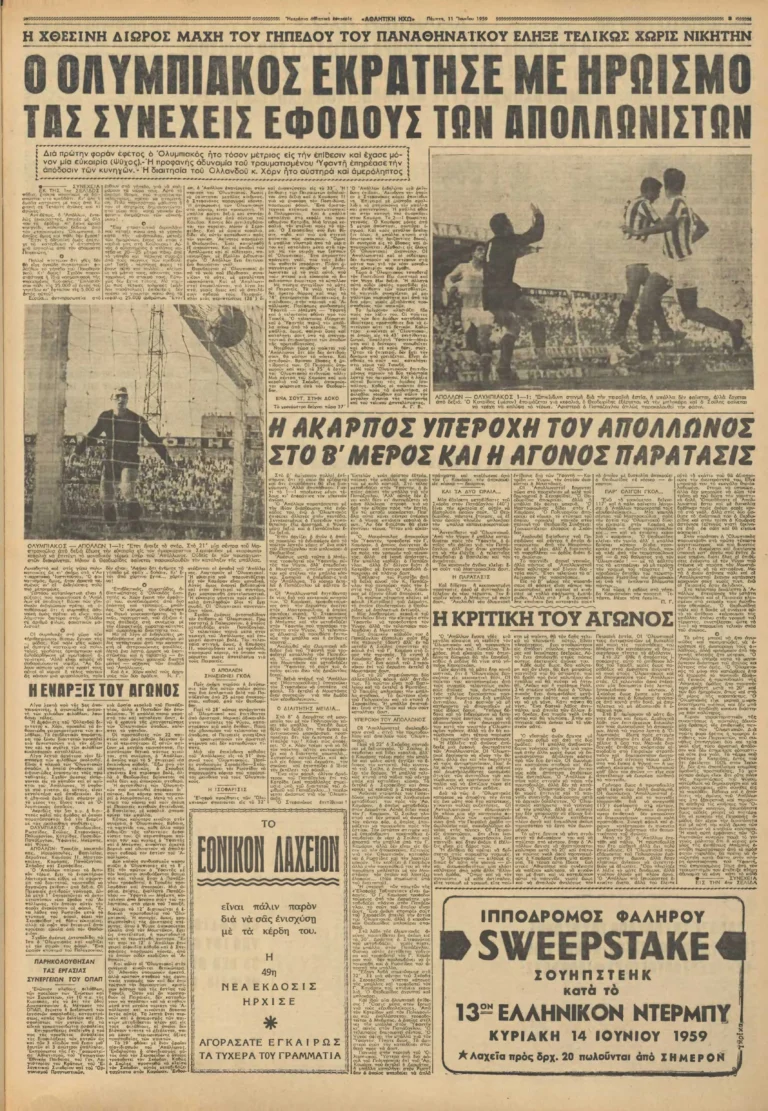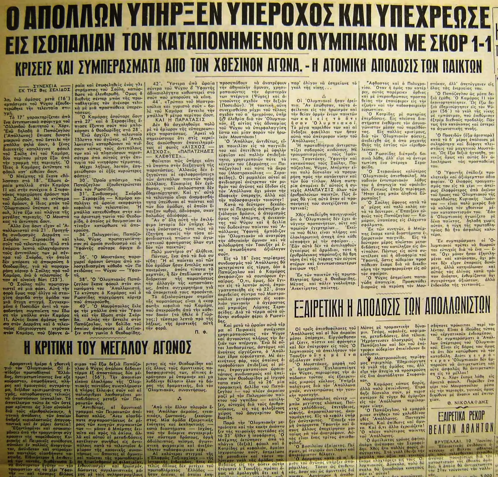| ΑΠΟΛΛΩΝ ΑΘΗΝΩΝ – ΟΛΥΜΠΙΑΚΟΣ 1-1 |