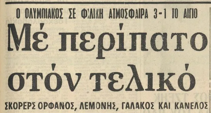 | ΟΛΥΜΠΙΑΚΟΣ – ΠΑΝΑΙΓΙΑΛΕΙΟΣ 3-1 |