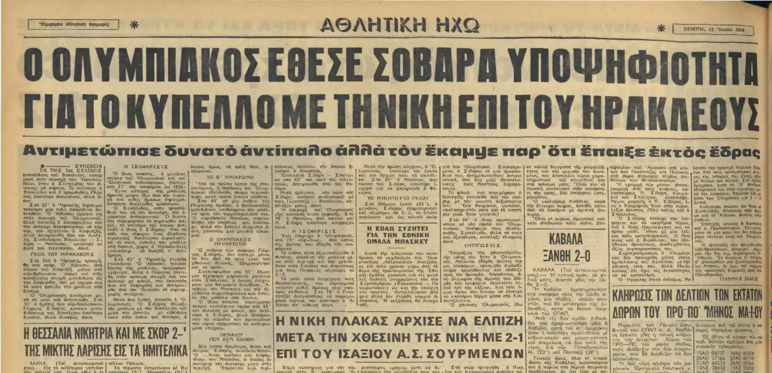 | ΗΡΑΚΛΗΣ – ΟΛΥΜΠΙΑΚΟΣ 2-3 |