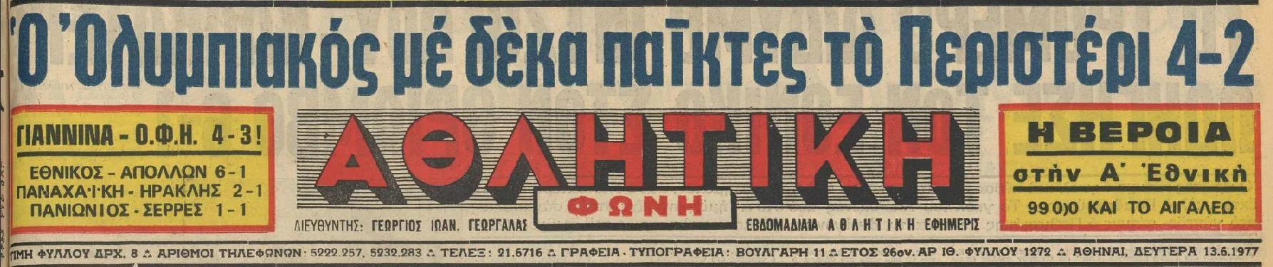 ΟΣΦΠ 48 ΛΑΡΙΣΑ 43 ΑΕΚ 41 ΠΑΟΚ 40 ΑΡΗΣ 39 ΠΑΟ 35 ΟΦΗ 33 ΗΡΑΚΛΗΣ-ΓΙΑΝΝΙΝΑ-ΔΟΞΑ 31 ΑΠΟΛΛΩΝ ΑΘ.-ΕΘΝΙΚΟΣ 29 ΠΑΝΣΕΡΡΑ’Ι’ΚΟΣ 28 ΠΑΝΙΩΝΙΟΣ-ΜΑΚΕΔΟΝΙΚΟΣ 27 ΠΑΝΑΧΑ’Ι’ΚΗ 24 ΡΟΔΟΣ-ΚΑΣΤΟΡΙΑ 20.
