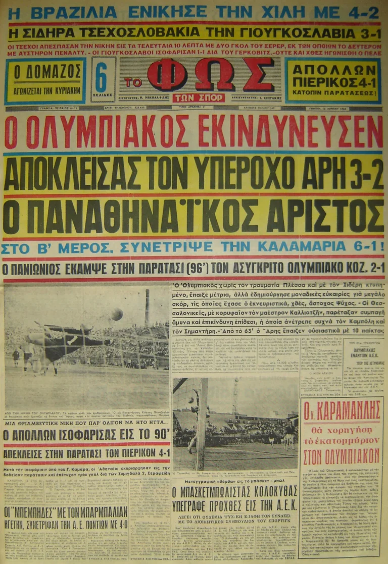 ΠΑΟ-ΑΠΟΛΛΩΝ ΚΑΛΑΜΑΡΙΑΣ=6-1, ΠΙΕΡΙΚΟΣ-ΑΠΟΛΛΩΝ ΑΘ.=1-4(παρ), ΠΑΝΙΩΝΙΟΣ-ΟΛΥΜΠΙΑΚΟΣ ΚΟΖΑΝΗΣ=2-1(παρ).