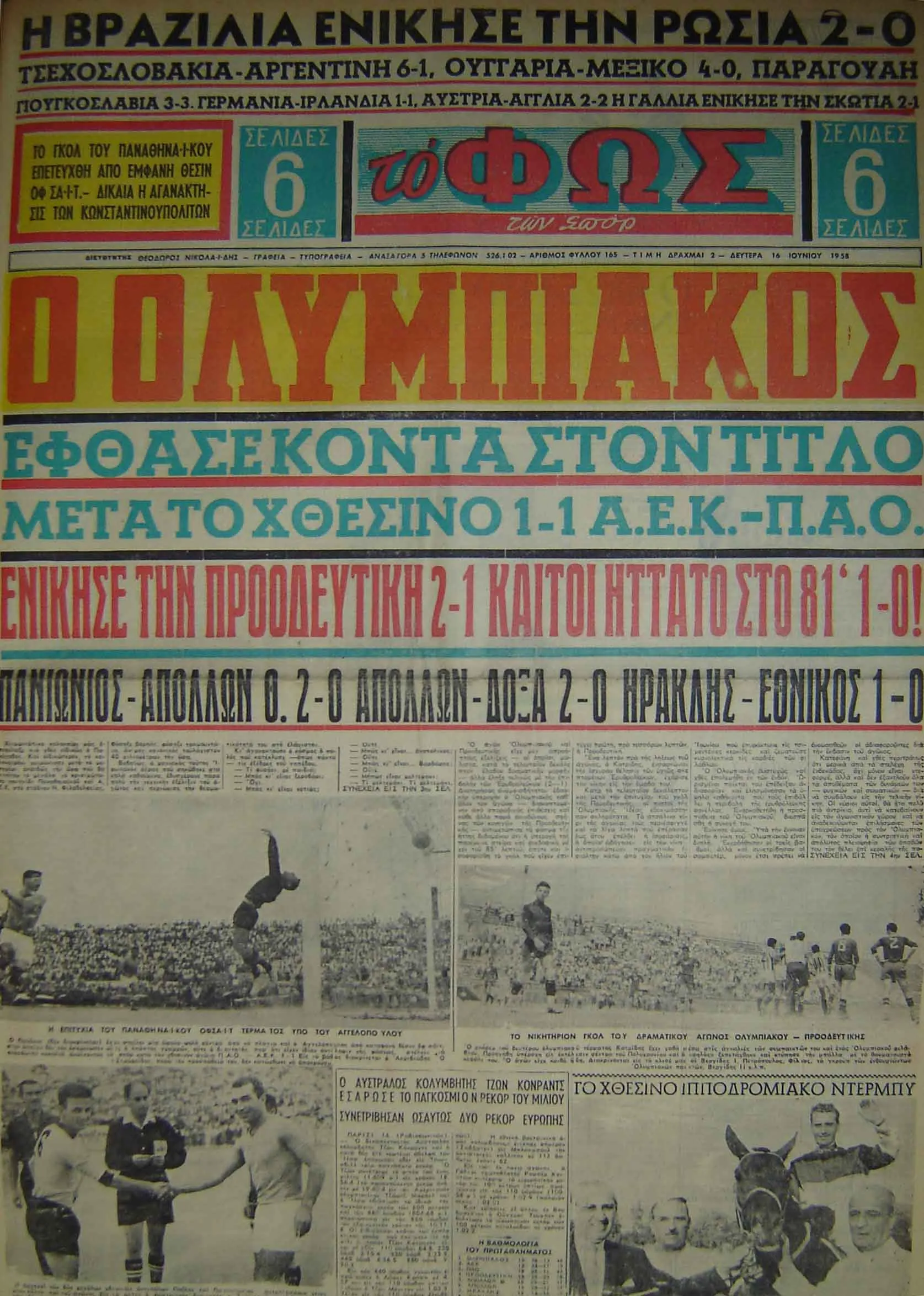 ΑΕΚ-ΠΑΟ=1-1 ΕΘΝΙΚΟΣ-ΗΡΑΚΛΗΣ=0-1 ΠΑΝΙΩΝΙΟΣ-ΚΑΛΑΜΑΡΙΑ=2-0 ΑΠΟΛΛΩΝ ΑΘ.-ΔΟΞΑ=2-0 ΠΑΟΚ-ΟΦΗ=6-3.