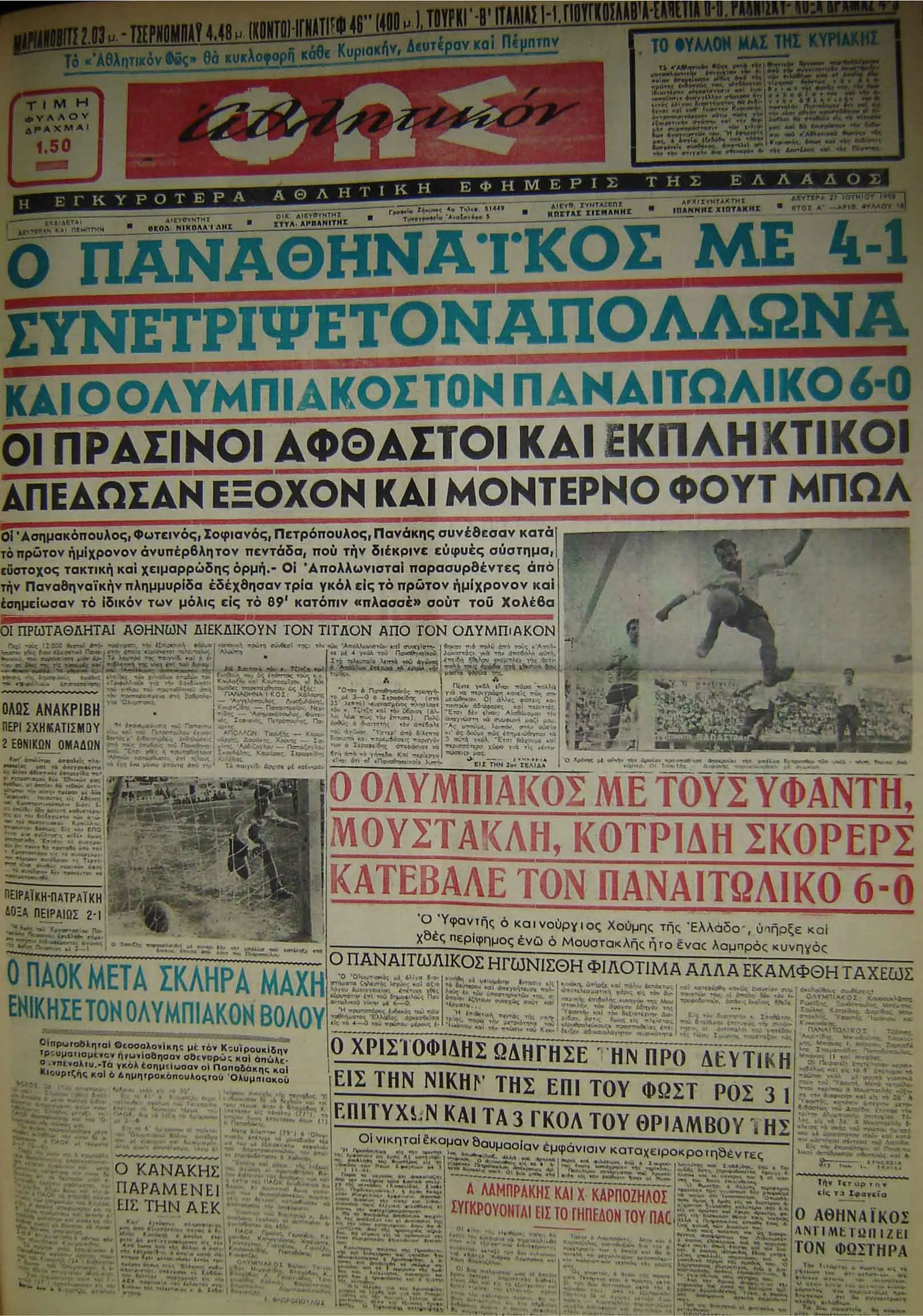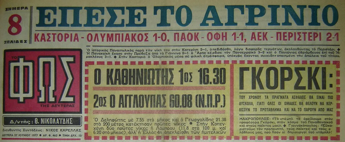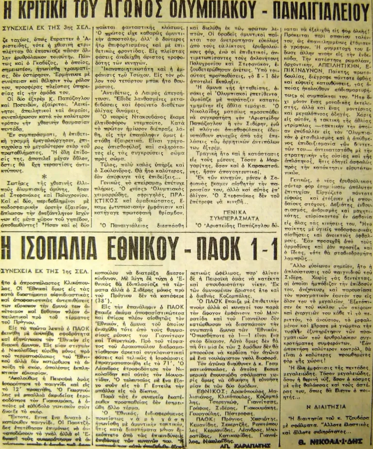 ΠΑΟ-ΠΑΟΚ=2-0 ΑΕΚ-ΓΙΑΝΝΙΝΑ=4-2 ΠΑΝΙΩΝΙΟΣ-ΑΡΗΣ=2-1 ΠΑΝΑΧΑ’Ι’ΚΗ-ΡΟΔΟΣ=3-2 ΛΑΡΙΣΑ-ΜΑΚΕΔΟΝΙΚΟΣ=3-1 ΟΦΗ-ΠΑΝΣΕΡΡΑ’Ι’ΚΟΣ=2-0 ΑΠΟΛΛΩΝ ΑΘ.-ΕΘΝΙΚΟΣ=3-1 ΗΡΑΚΛΗΣ-ΚΑΣΤΟΡΙΑ=5-1.