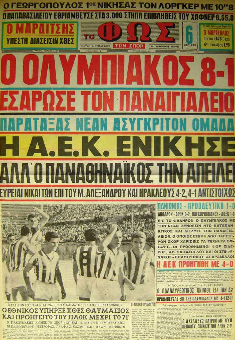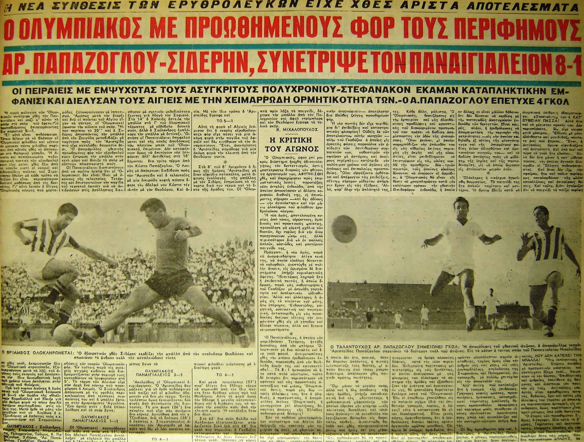 | ΟΛΥΜΠΙΑΚΟΣ – ΠΑΝΑΙΓΙΑΛΕΙΟΣ 8-1 |