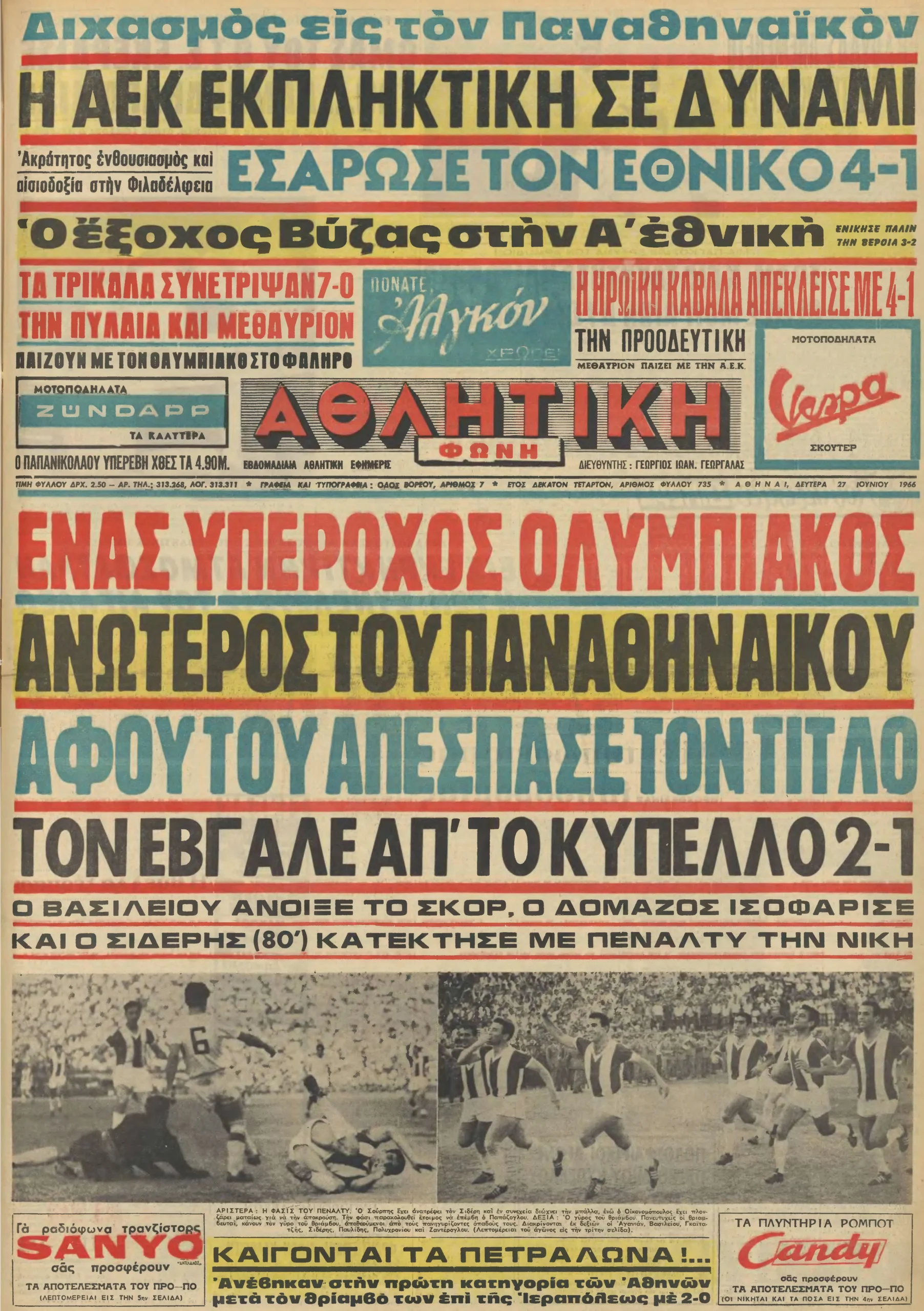 ΑΕΚ-ΕΘΝΙΚΟΣ=4-1 ΚΑΒΑΛΑ-ΠΡΟΟΔΕΥΤΙΚΗ=4-1 ΤΡΙΚΑΛΑ-ΕΘΝΙΚΟΣ ΠΥΛΑΙΑΣ ΘΕΣ/ΝΙΚΗΣ=7-0.