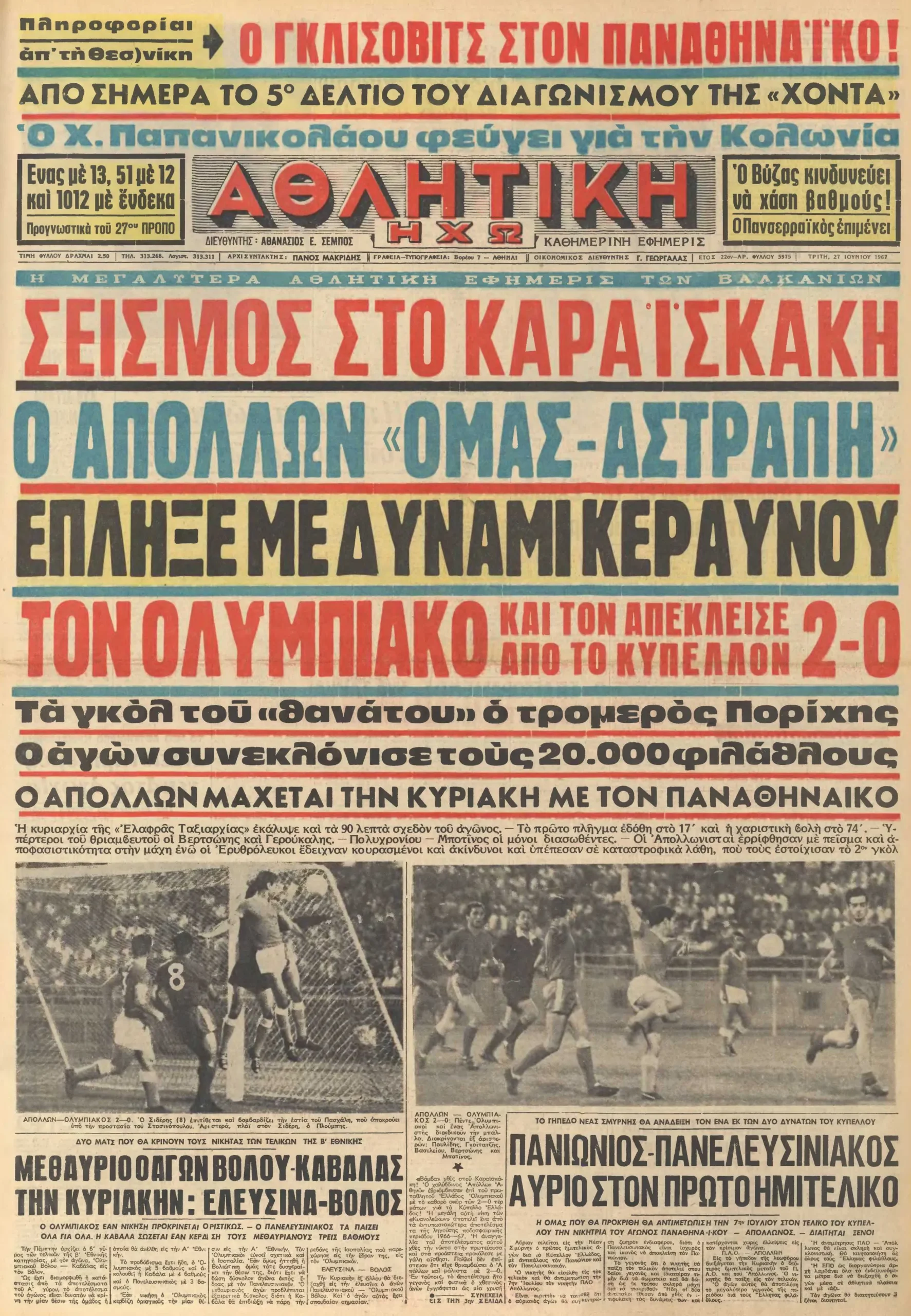 | ΟΛΥΜΠΙΑΚΟΣ – ΑΠΟΛΛΩΝ ΑΘΗΝΩΝ 0-2 |