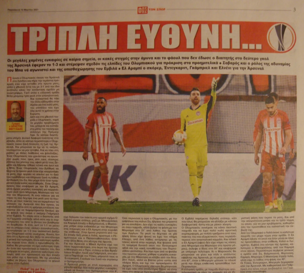 / Blogs / By Stratos Kavvadas Σαν σήμερα 11/3 GAV_01.indd Scanned by Kodak i600 EUROPALEAGUE 2020-2021 / ÏÓÖÐ – ÁÑÓÅÍÁË (ÖÙÔÏÃÑÁÖÉÁ: LATO KLODIAN / EUROKINISSI)
