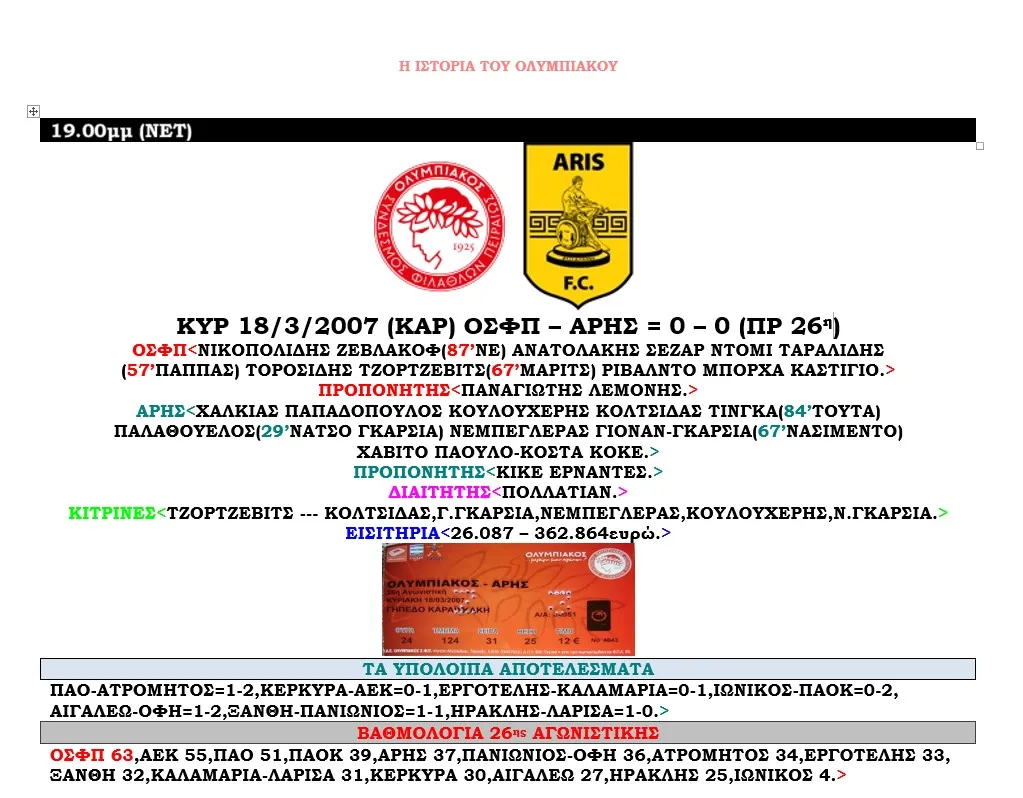 ΟΛΟΙ ΟΙ ΑΓΩΝΕΣ ΤΟΥ ΟΛΥΜΠΙΑΚΟΥ
