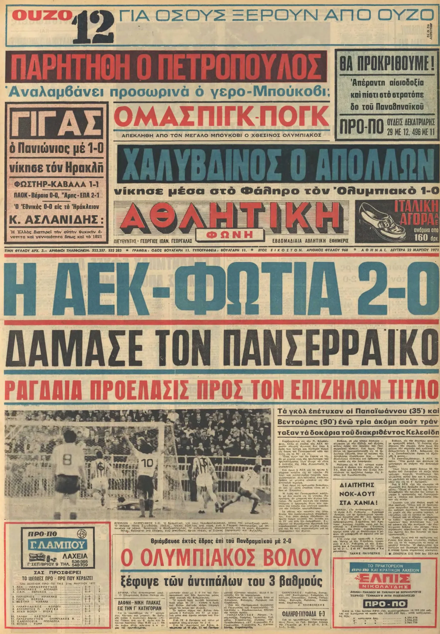 NEWSPORTS 21/3/2001 ¦AO – O¤YM¦IAKOª.
