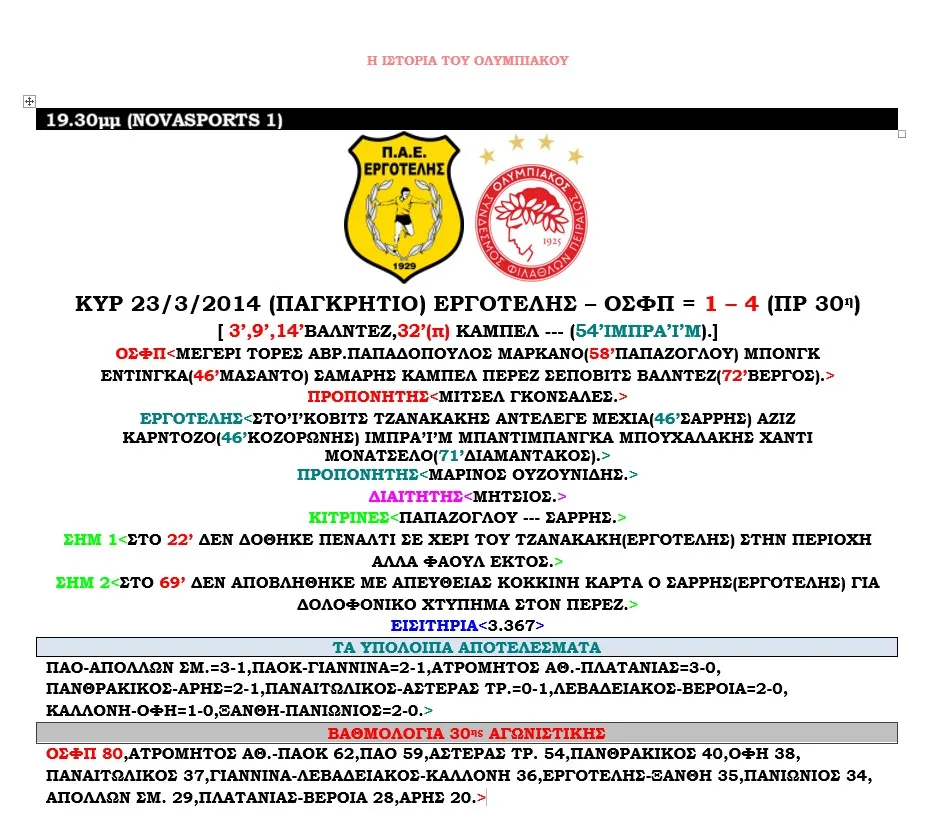 ΟΛΟΙ ΟΙ ΑΓΩΝΕΣ ΤΟΥ ΟΛΥΜΠΙΑΚΟΥ