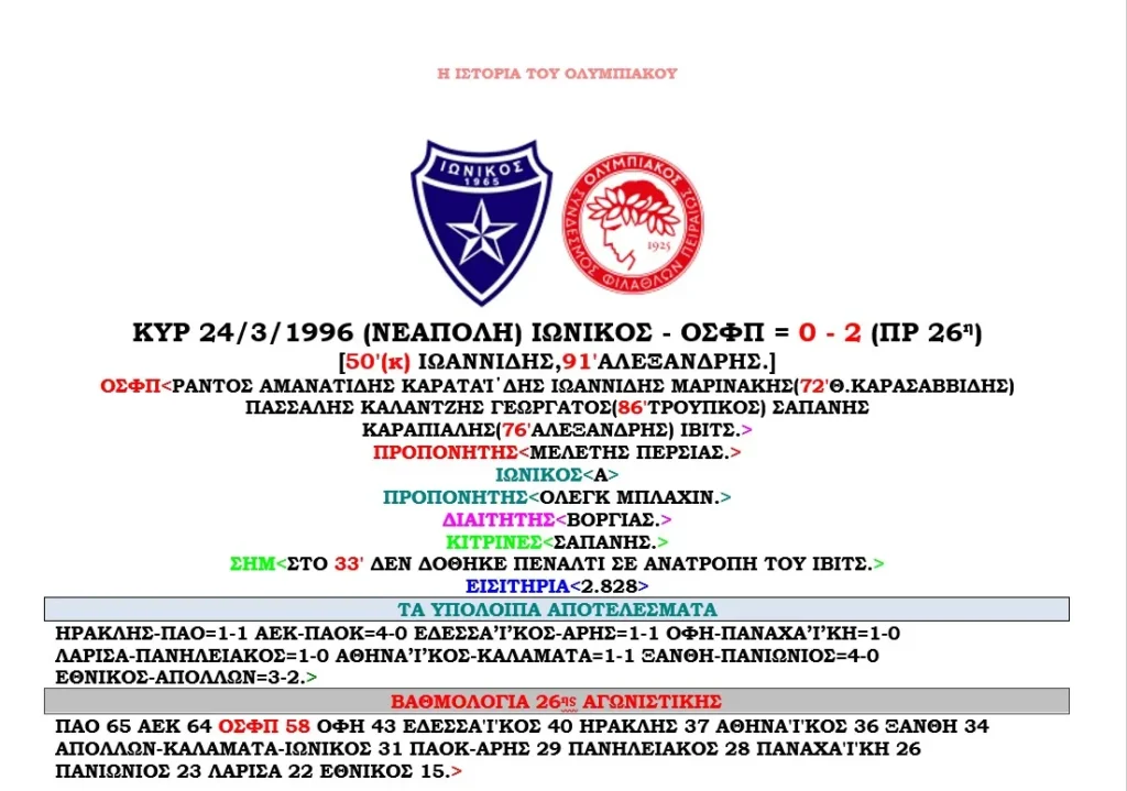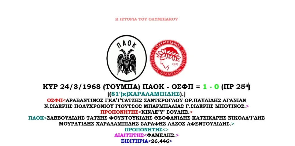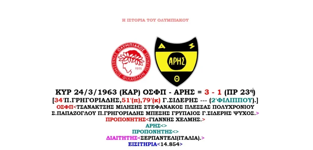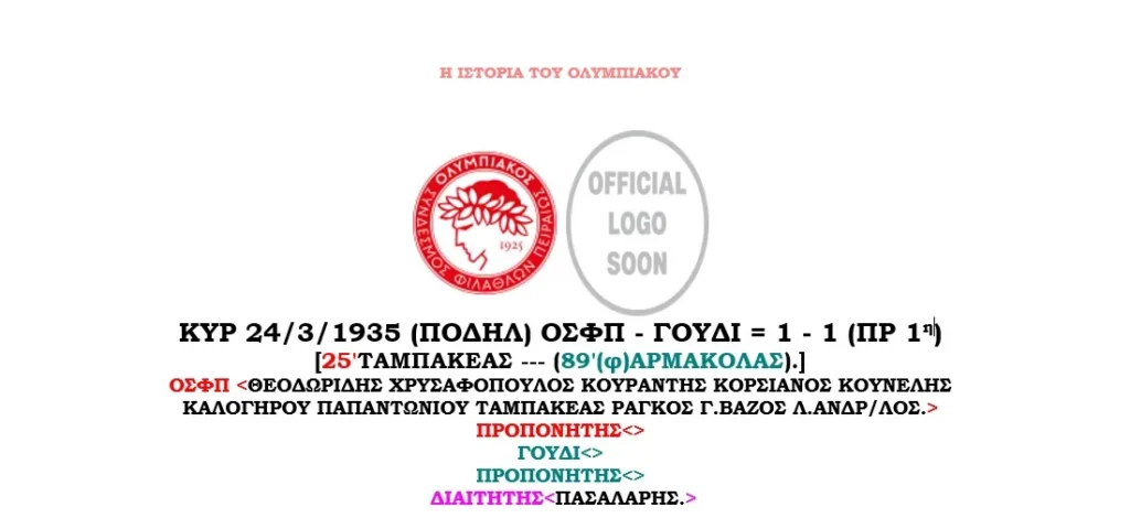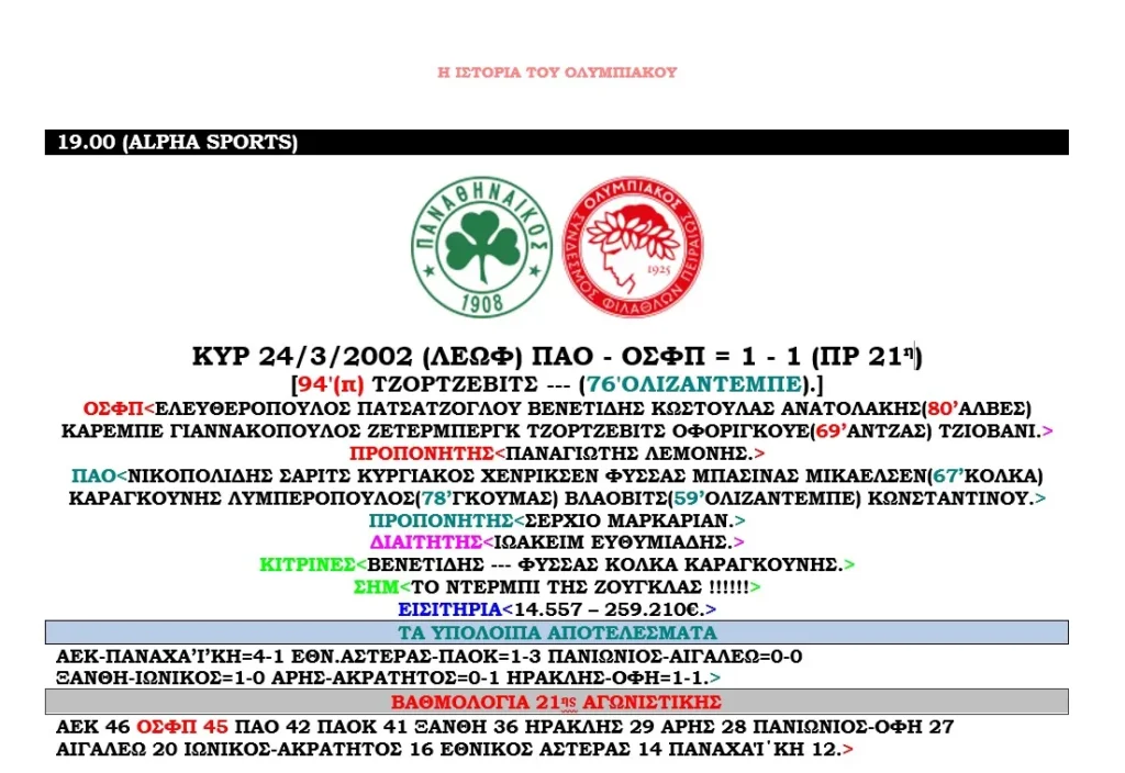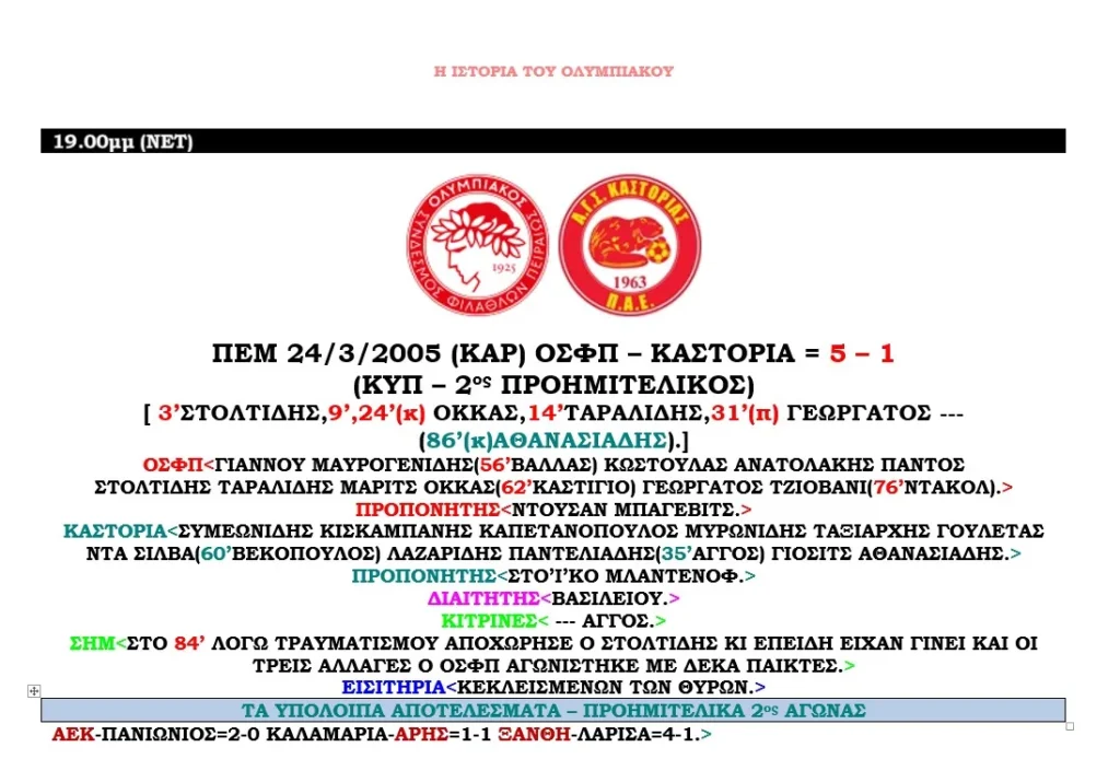 ΟΛΟΙ ΟΙ ΑΓΩΝΕΣ ΤΟΥ ΟΛΥΜΠΙΑΚΟΥ