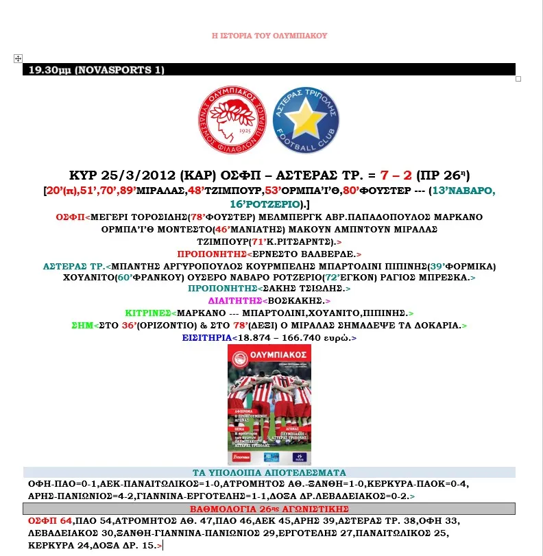 ΟΛΟΙ ΟΙ ΑΓΩΝΕΣ ΤΟΥ ΟΛΥΜΠΙΑΚΟΥ