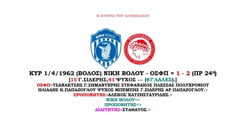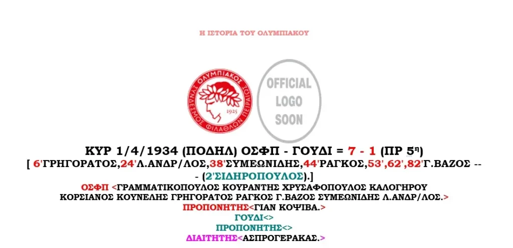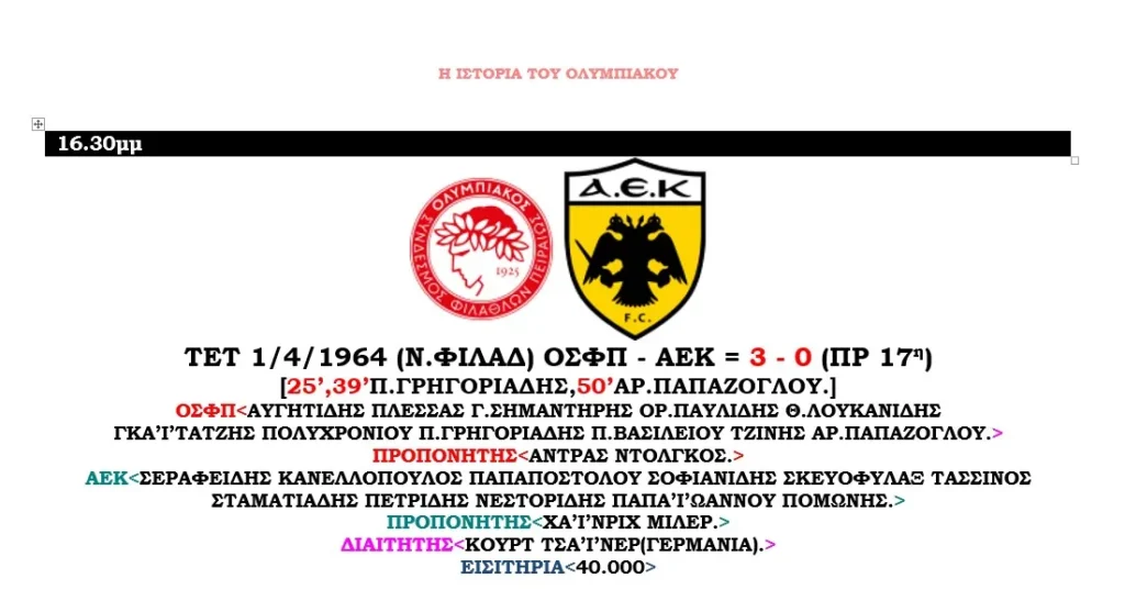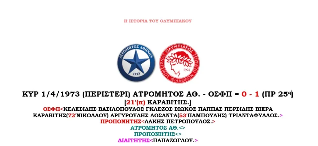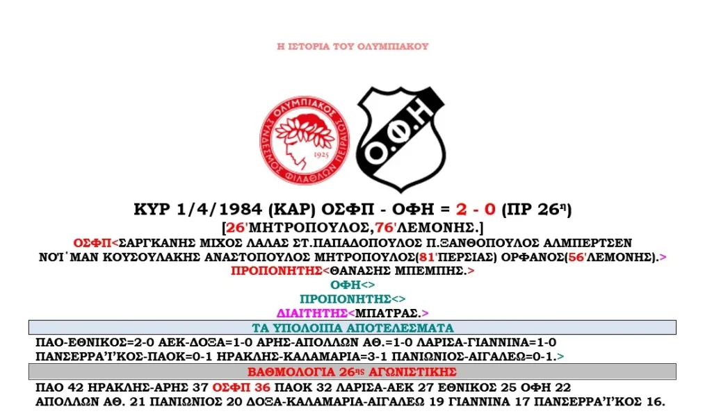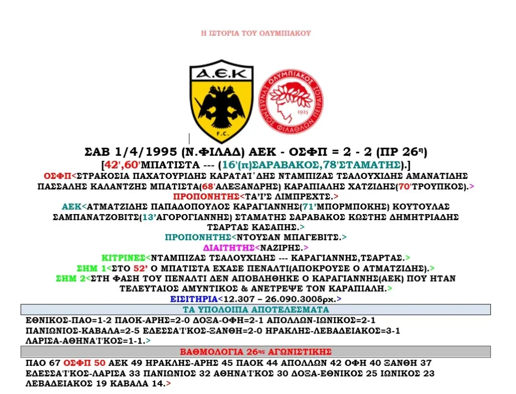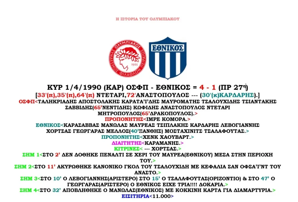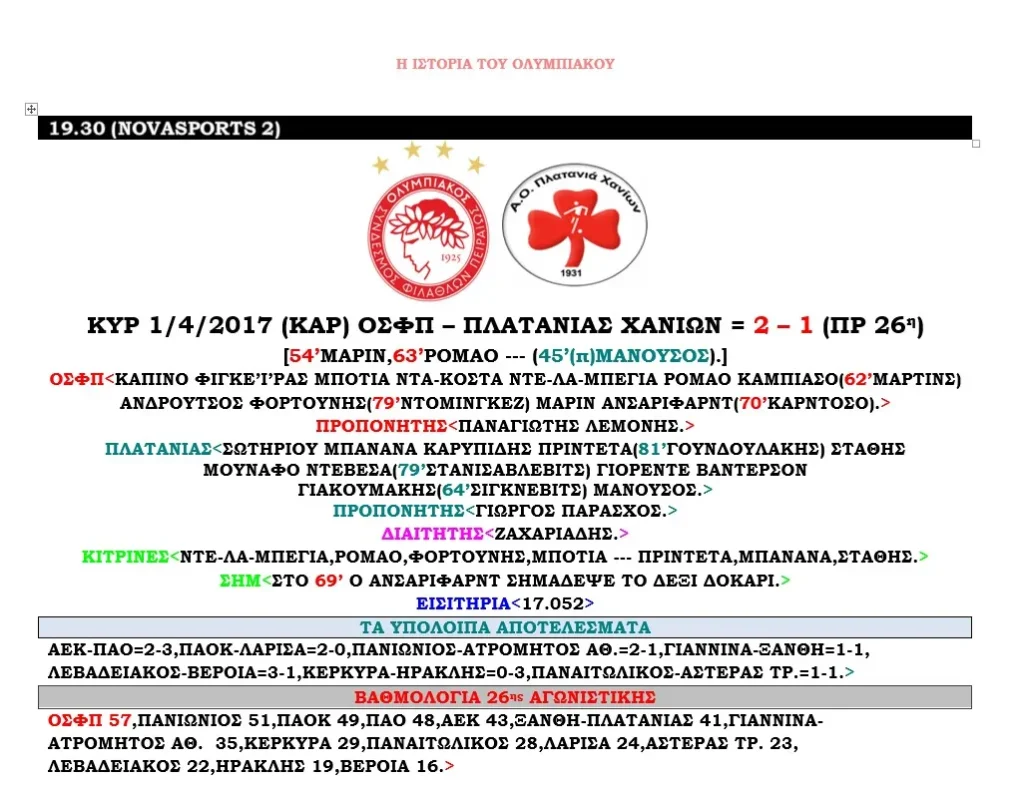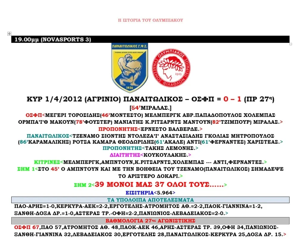 ΟΛΟΙ ΟΙ ΑΓΩΝΕΣ ΤΟΥ ΟΛΥΜΠΙΑΚΟΥ