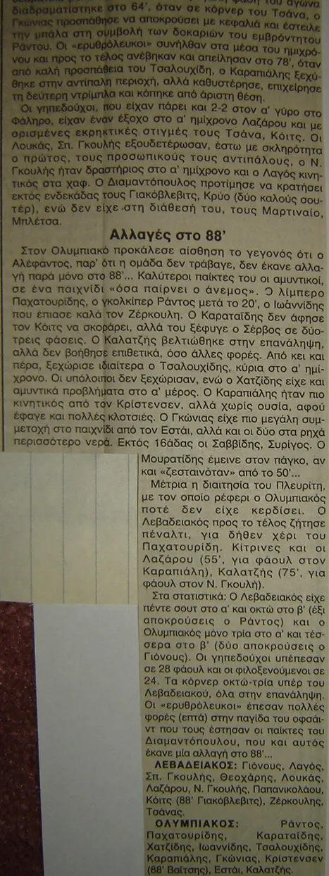 ΟΛΟΙ ΟΙ ΑΓΩΝΕΣ ΤΟΥ ΟΛΥΜΠΙΑΚΟΥ